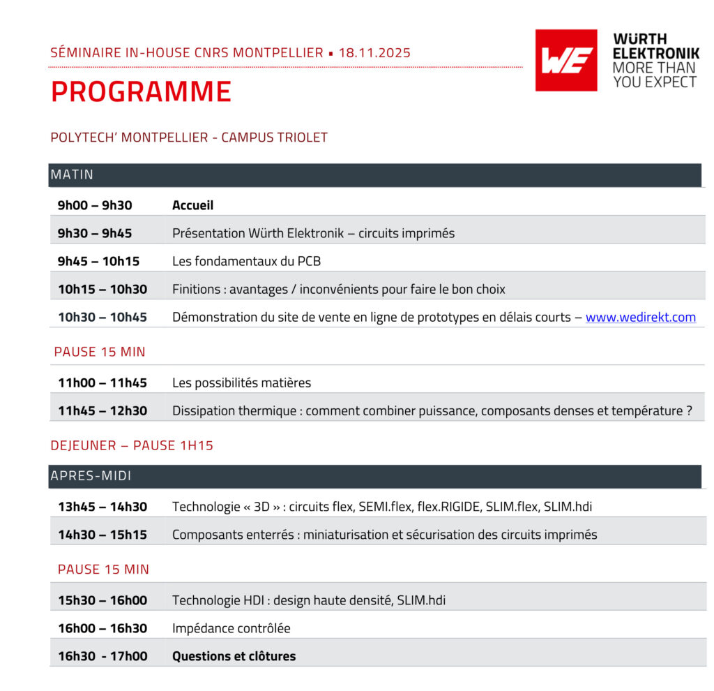Vous pourrez également échanger avec deux experts de l’entreprise Würth Elektronik et rencontrer d’autres collègues qui partagent la même thématique de travail. Le repas sera pris en charge par le LIRMM et aura lieu au restaurant « Minerve ».